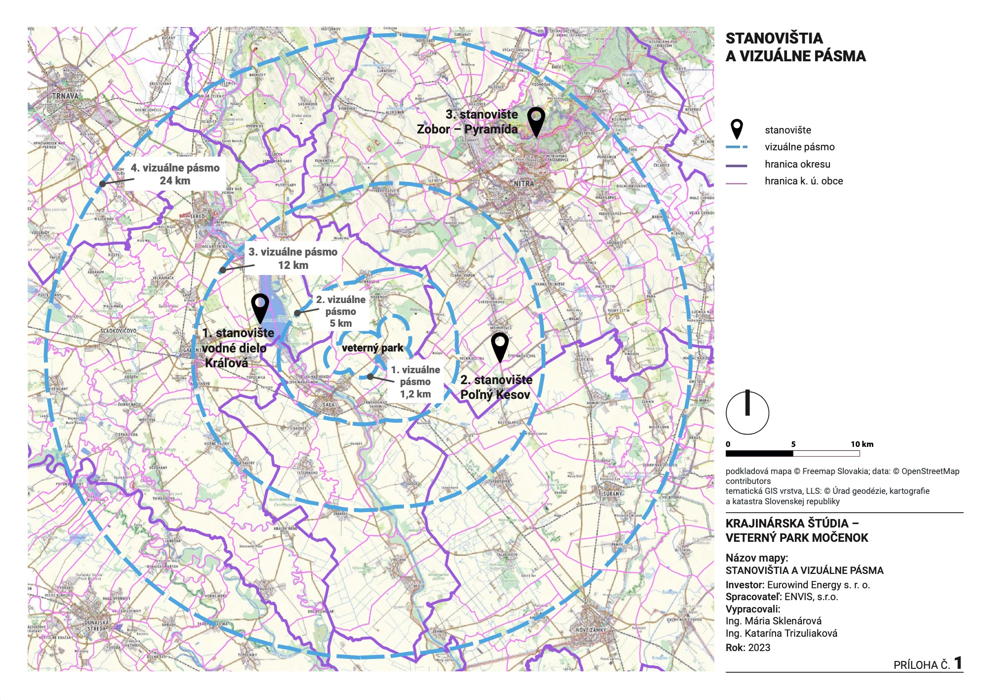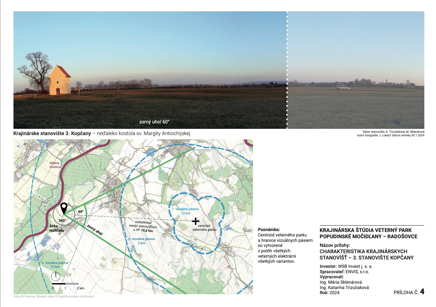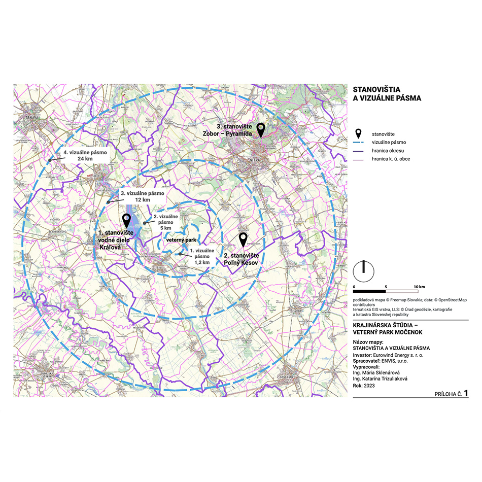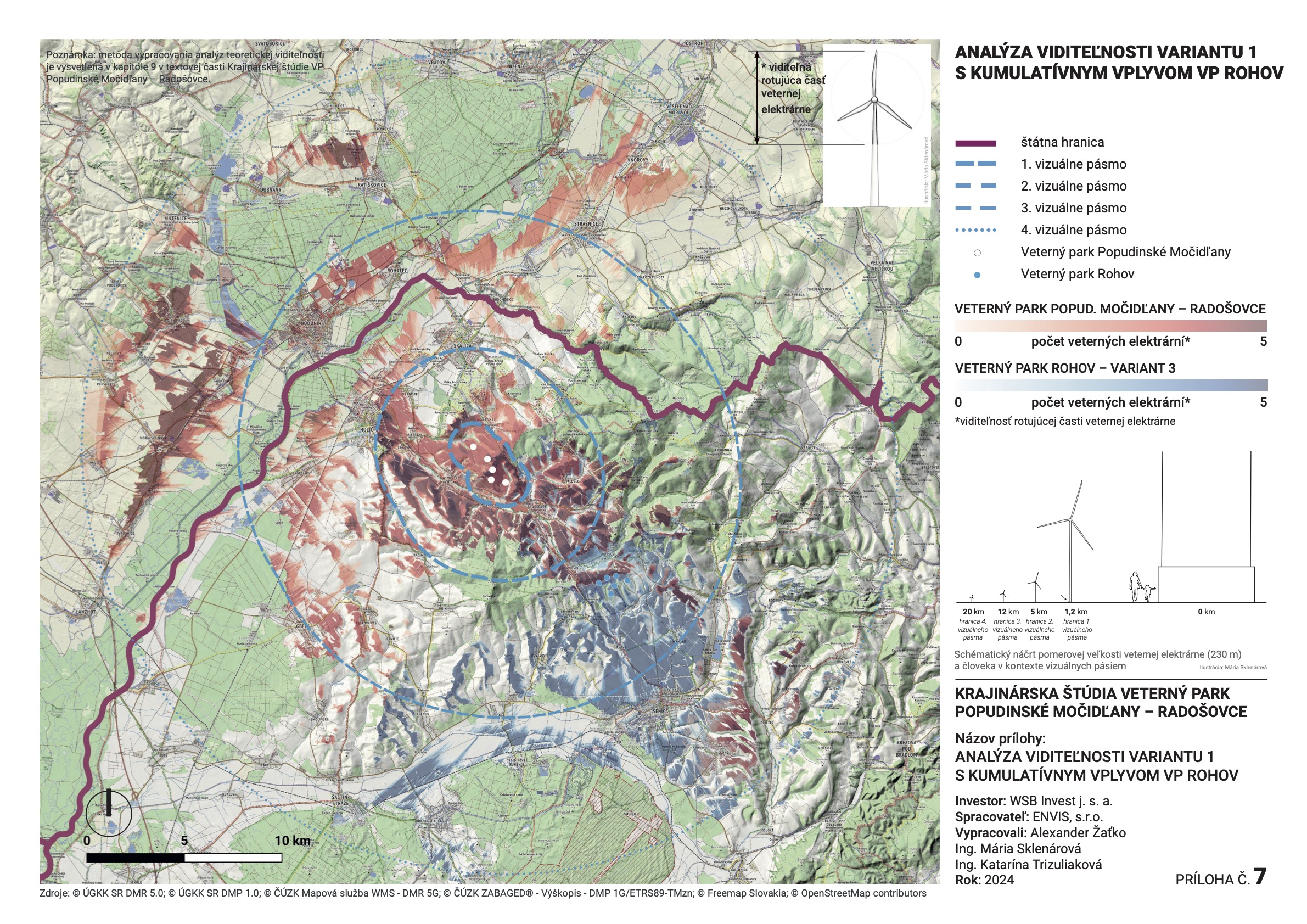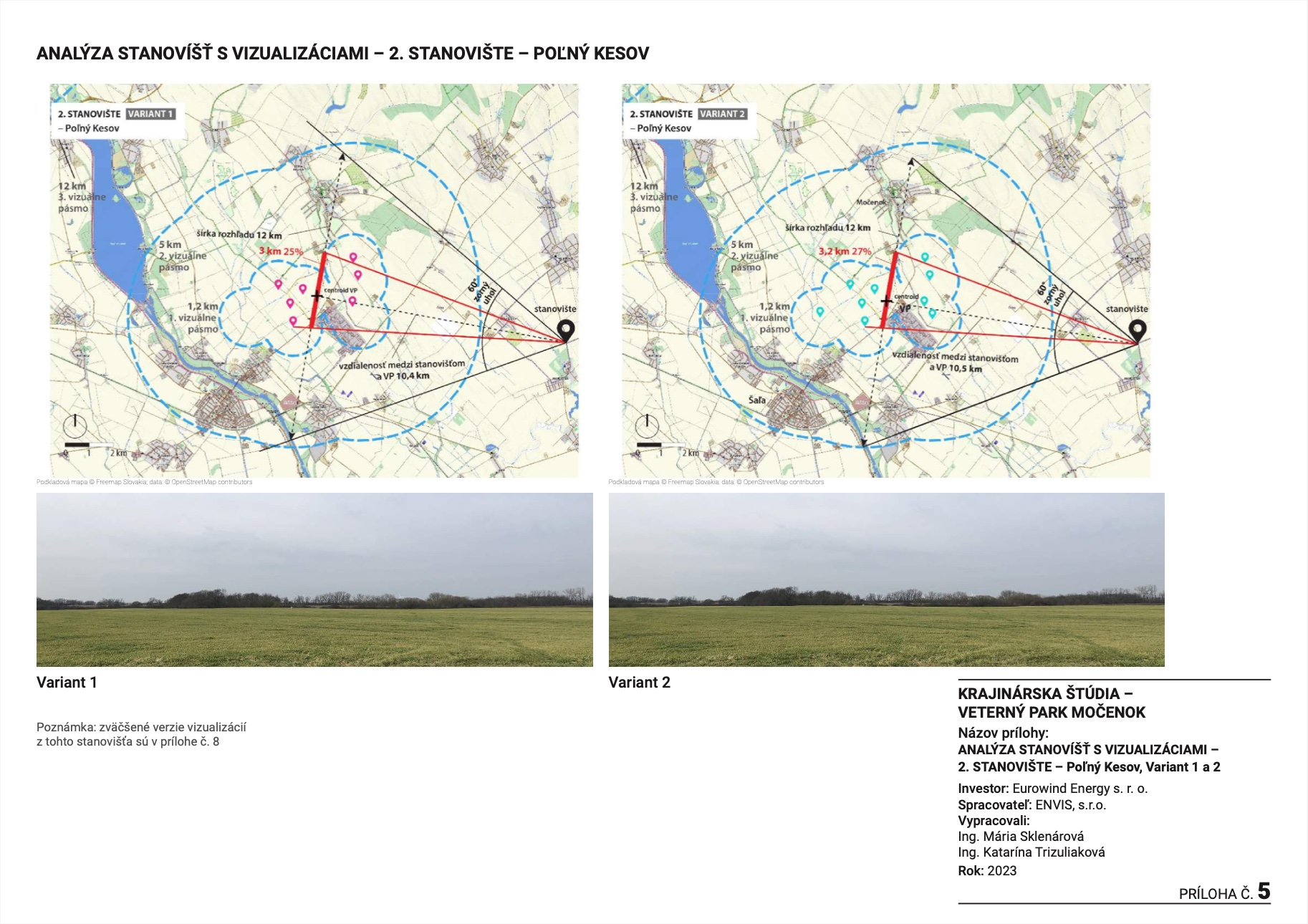 Vypracovali sme viacero krajinárskych štúdií veterných parkov v rámci procesu EIA. Keďže je predpoklad, že veterný park bude v krajine pôsobiť ako výrazná dominanta a tým zmení vizuálne vnímanie krajiny, vypracované štúdie skúmajú rozsah vizuálneho vplyvu. Na priblíženie zmien, ktoré v krajine nastanú je potrebné identifikovať hodnoty krajiny a určiť mieru ich ohrozenia. Okrem mapových výstupov znázorňujúcich plošný rozsah vizuálneho vplyvu, sú znázornené zmeny vzhľadu krajiny vo fotografiách súčasného stavu. Modelovanie a vizualizácia vizuálneho pôsobenia nových prvkov v krajine umožňuje pripraviť opatrenia na zmiernenie ich vplyvu.
