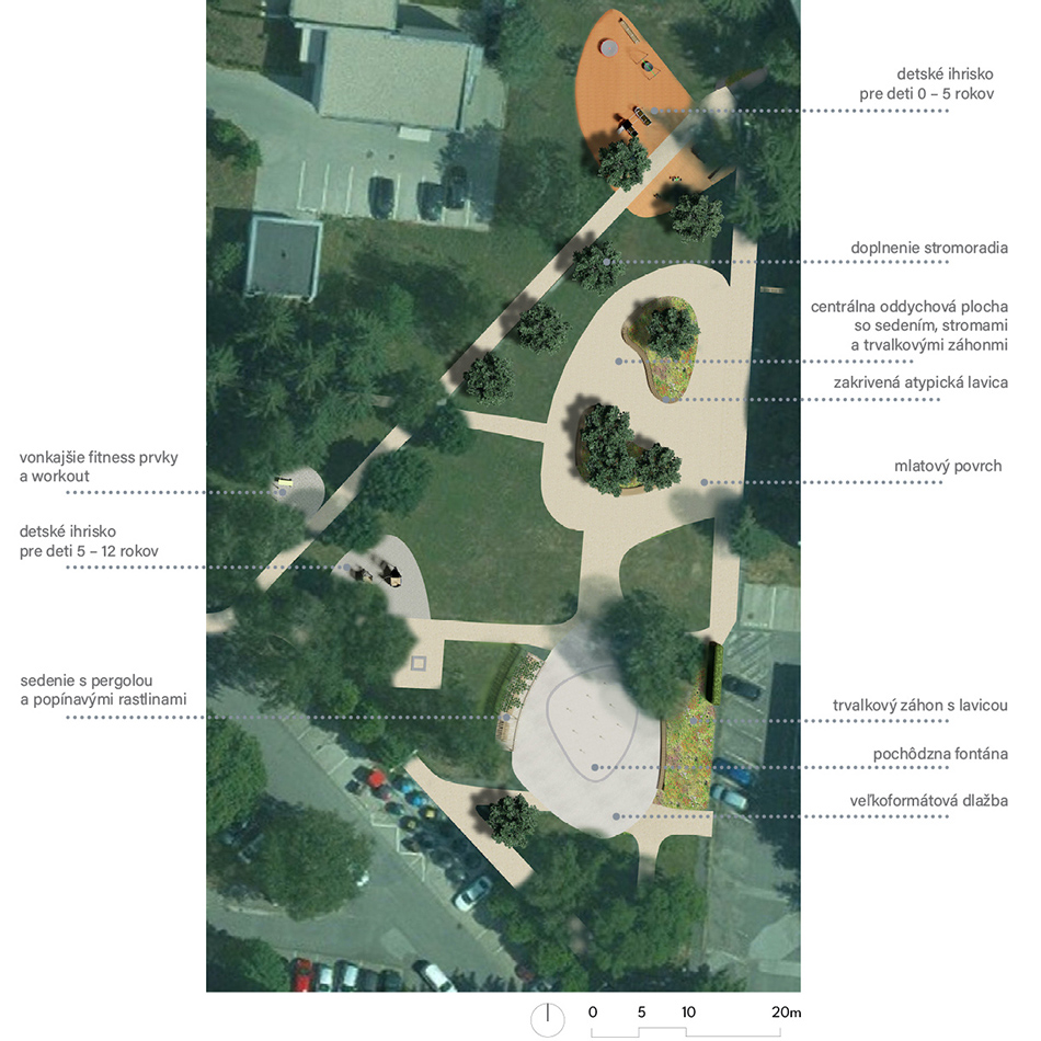 Štúdia sa zaoberá riešením verejného priestranstva medzi bytovými domami na sídlisku Podborová vo Zvolene. Cieľom bolo pozdvihnúť kvalitu verejne prístupných plôch, vrátane mobiliáru, prvkov detských ihrísk, vonkajších prvkov na cvičenie, či navrhnúť obnovu fontány. V kontexte klimatickej zmeny boli navrhované vhodné povrchy, tieniace prvky, výber drevín, skladba trvalkových záhonov a revitalizácia fontány v modernom dizajne a funkčnosti. V krajinno-architektonickom návrhu je snaha zachovať existujúce dreviny v území, no zároveň doplniť ich o ďalšie. Výsledkom by mal byť kvalitný verejný priestor pre všetky vekové kategórie, ktorý bude nabádať v ňom zotrvať.